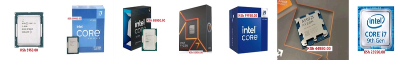 Brand New Processors 6th Generation Intel Core i3 6100 upto 3.7ghz 2Core_4Threaded tray Processor for Desktop - 5950.00 Ryzen 5 upto 4.4ghz 12cpu AMD 5600GT Unlocked tray Processor for Desktop - 22950.00 9th Generation Intel Core i7 9700 upto 4.7GHz 8Core_8Threaded LGA1151 tray Processor for desktop - 23950.00 10th Generation Intel Core i7 10700k upto 4.8ghz 8Core_16Threaded tray Processor for Desktop - 27950.00 12th Generation Intel Core i7 12700k upto 5ghz 12-Core 20-Thread tray Desktop Processor - 39950.00 AMD Ryzen 7 8700G processor for Desktop Gaming PC - 44950.00 14th Generation Intel Core i7 14700KF upto 5.6GHz 20Core_28Threaded LGA1700 Processor for desktop - 84950.00 Intel Core i9 Ultra 285K Processor for desktop - 89950.00 AMD Ryzen 7 7800x 3D upto 5ghz 8Core_16Threaded Desktop Processor - 92950.00 Intel Core i9 14900K 24 Cores 32 Threads up to 6 GHz Unlocked LGA1700 Processor for desktop - 99950.00 CONTACT : 0786 178372 or 0726 178372 LOCATION : Shop 501 (5th floor), Veteran House (Graffins college) Moi avenue, Nairobi Kenya. ![]() | |