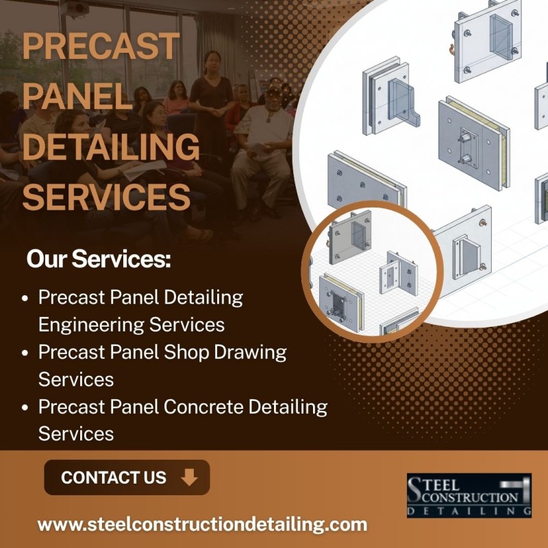 Steel Construction Detailing, offers professional Precast Panel Detailing Services in the USA, that are designed to bring accuracy, efficiency, and clarity to every construction project. Our experienced team of Precast Modelers creates detailed shop drawings and erection plans for all types of precast elements, including wall panels, beams, columns, slabs, and stairs. Using advanced software like AutoCAD and Tekla Structures, we prepare precise 2D and 3D models that clearly show connections, reinforcement details, and embedment layouts, helping fabricators and builders work without confusion. Our Engineers, architects, and contractors ensure that every drawing meets project requirements, and industry standards. This coordination reduces errors, saves time, and ensures a smooth construction process from start to finish. Whether it’s a commercial, residential, or industrial structure, our goal is to provide accurate, cost-effective, and easy-to-understand precast detailing solutions. With Steel Construction Detailing, you can count on a reliable team that values quality, precision, and timely delivery in every project. With years of industry experience and a customer-centric approach, we aim to be your trusted partner in achieving flawless precast panel fabrication and installation, ensuring your project’s success from start to finish. Our Services: Precast Panel Detailing Engineering Services Precast Panel Shop Drawing Services Precast Panel Concrete Panel Design Services Precast Panel Concrete Wall Detailing Services Precast Panel Concrete Detailing Services Our Company offers Precast Panel Detailing Services in USA, and in other cities like: Los Angeles, Chicago, Phoenix, Philadelphia, San Francisco, San Antonio, San Diego, Dallas, and San Jose, Cali, Florida, Miami, New Jersey, etc. Our Technical Expertise: AutoCAD, RebarCAD, CADS RC, Tekla Structures, Revit, etc. Our Samples: https://www.steelconstructiondetailing.com/pre-caste-panel-detailing.html Visit us: https://www.steelconstructiondetailing.com/shop-drawing-detailing/united-states-shop-drawing-detailing.html For more information, visit our website: https://www.steelconstructiondetailing.com/pre-caste-panel-detailing.html ![]() | |
