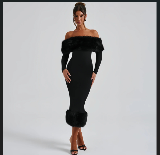Glamorous Black Vittoria Midi Dress 2025 – Viral USA Winter Evening Outfit Idea | |