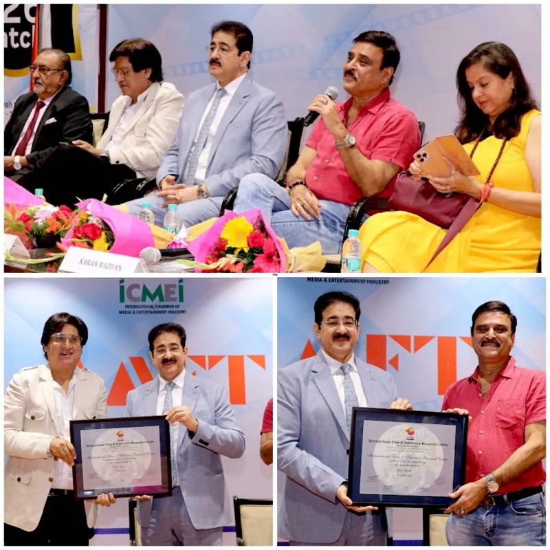 Noida, October 2025 — Marwah Studios, the hub of creative excellence at Noida Film City, hosted the promotion of the upcoming feature film “Saira Khan Case” in the gracious presence of Producer, Director, and Writer Karan Razdan and noted Artist Mukesh Tyagi. Dr. Sandeep Marwah, President of Marwah Studios and founder of Noida Film City, extended a warm welcome to the distinguished guests. He appreciated the thought-provoking subject of the film and encouraged young filmmakers to create cinema that reflects truth, courage, and social relevance. Ashok Tyagi, Secretary General of the International Chamber of Media and Entertainment Industry (ICMEI), praised the efforts of Karan Razdan for his contribution to meaningful cinema and for consistently addressing powerful themes through his storytelling. Speaking about the film, renowned director Karan Razdan shared that “Saira Khan Case” is inspired by real incidents and explores deep human emotions, justice, and morality. He emphasized the importance of cinema as a medium to bring about awareness and social change. Actor Mukesh Tyagi expressed his gratitude for being part of such a strong and thought-provoking project. He shared his enriching experience working with Karan Razdan and appreciated Marwah Studios for providing a vibrant platform to interact with the next generation of filmmakers. On this occasion, Dr. Sandeep Marwah presented the dignitaries with Life Membership of the International Film and Television Research Centre (IFTRC) as a token of appreciation for their valuable contribution to the world of cinema. The event concluded with an interactive session with students, where both guests shared insights on film direction, acting, and the evolving landscape of Indian cinema—making it an inspiring and memorable day at Marwah Studios. ![]() | |