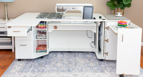 Price range: $4,999.00 The NEW Model 9090 Sewing Cabinet is the ultimate sewing center, designed to offer a convenient and expandable work surface for all your sewing needs. It provides easy access to your tools and materials, keeping everything within reach for maximum efficiency. The spacious swing-up table can comfortably accommodate a sewing machine or serger (up to 45 lbs), a pressing mat, or a cutting mat. With everything organized in one location, the Model 9090 makes sewing easier and more enjoyable. ![]() | |