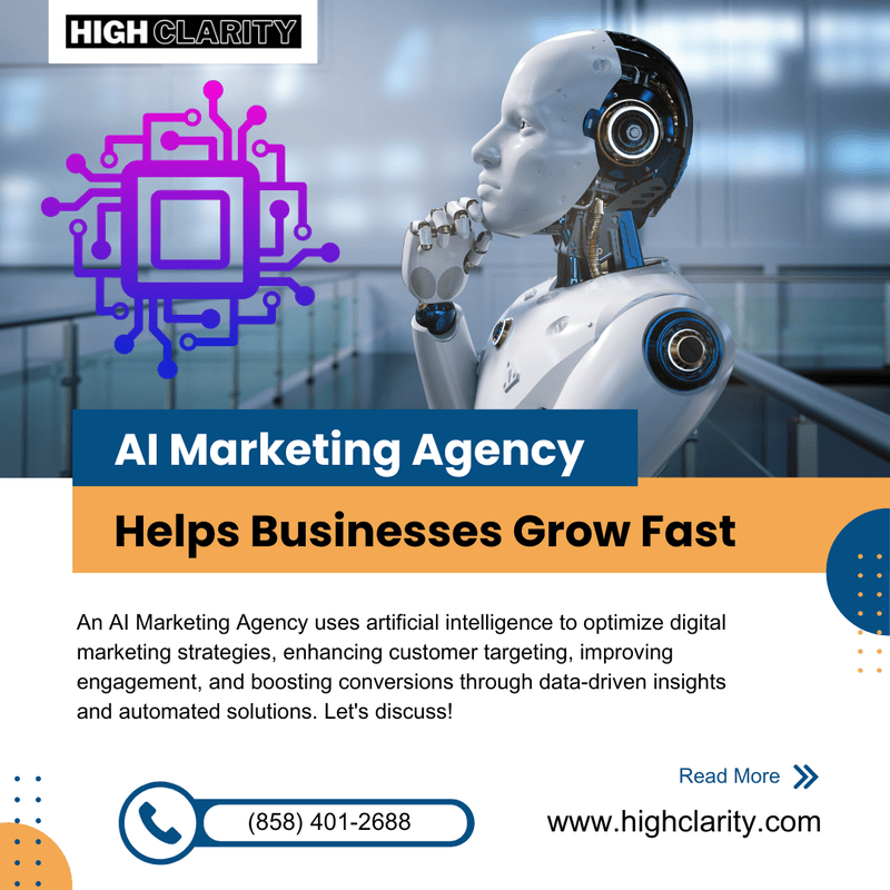 High Clarity is a results-driven AI Marketing Agency helping businesses dominate search rankings with advanced Artificial Intelligence Optimization (AIO). Our strategies combine machine learning, predictive analytics, and semantic SEO to improve visibility across Google, ChatGPT, Gemini, and other AI engines. We focus on intent-driven keyword research, structured data, and E-E-A-T principles to align with Google’s latest algorithm updates. From AI-optimized content creation to automated link building and performance tracking, our tailored solutions ensure sustainable growth and higher conversions. At High Clarity, we future-proof your brand with AI-powered marketing that delivers measurable results and long-term competitive advantage. ![]() | |