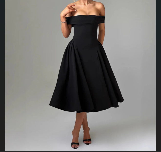 Elegant Off-Shoulder Miranda Midi Dress 2025 – Trending Fashion Look | |