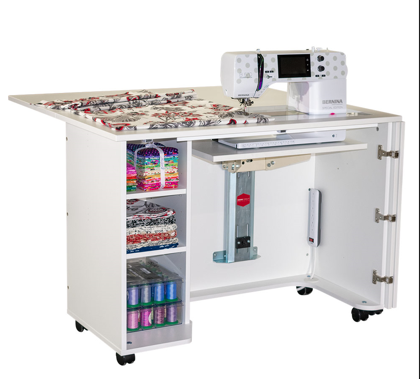 Make use of the Model 4100 Sewing Cabinet’s full functionality along with a reliable Air Lift. At an unbeatable price, this discounted Model 4100 Sewing Cabinet offers the durability, comfort, and ease of use you require. With Horn of America’s Limited Lifetime Warranty, the Model 4100 is produced in the United States of America. Price $1,359.00 Dimensions: 25” x 13" sewing machine cut-out Open: 41-3/4” Width 39-1/4” Depth 29-3/4” Height Closed: 41-3/4” Width 20-1/2” Depth 29-3/4” Height Weight: 132 lbs. Details: The 25” x 13” opening to fits most medium sized sewing machines Two adjustable shelves for storage Weighing 132 lbs, the 4100 is lighter than most cabinets, allowing it to easily be pulled out from a wall to setup the drop leaf. The bifold door allows you to close the cabinet when it's not in use Easy-roll casters ![]() | |