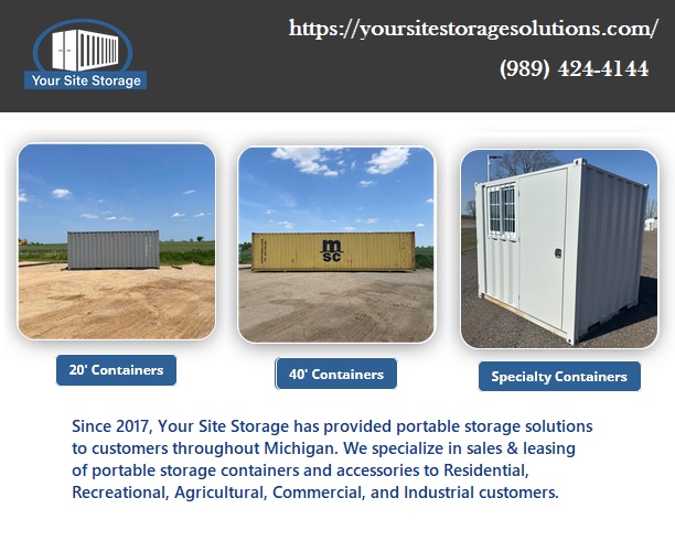 Looking for cheap container storage units in Clare, Michigan? Your Site Storage Solutions cheap container storage units in Clare, Michigan, starting at just $90/month with no broker fees involved. Choose from a 2, 3, 4, or 5-year plan and enjoy a 90 Days Same As Cash offer, plus early payoff with no penalty. Free local delivery is provided within 30 miles of Clare, MI, and the large onsite inventory means buyers can see their unit before purchase. Get cheap container storage units in Clare, Michigan or personal storage needs. Visit us at https://yoursitestoragesolutions.com ![]() | |