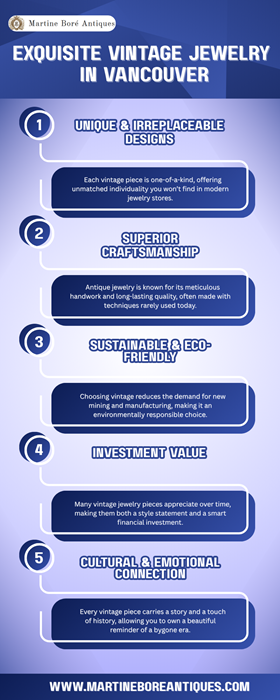 Discover the charm of Vintage Jewelry in Vancouver at www.martineboreantiques.com/category/jewelry. Our curated collection features elegant antique pieces that reflect history, craftsmanship, and timeless sophistication. From intricate necklaces to classic rings, every item tells a story of artistry and heritage. Visit us to find a perfect vintage treasure that complements your unique style. ![]() | |
