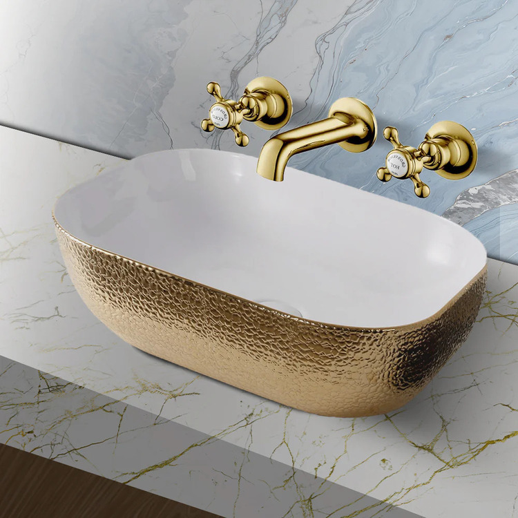 Mika Ceramic Countertop Basin Gloss White and Gold | |