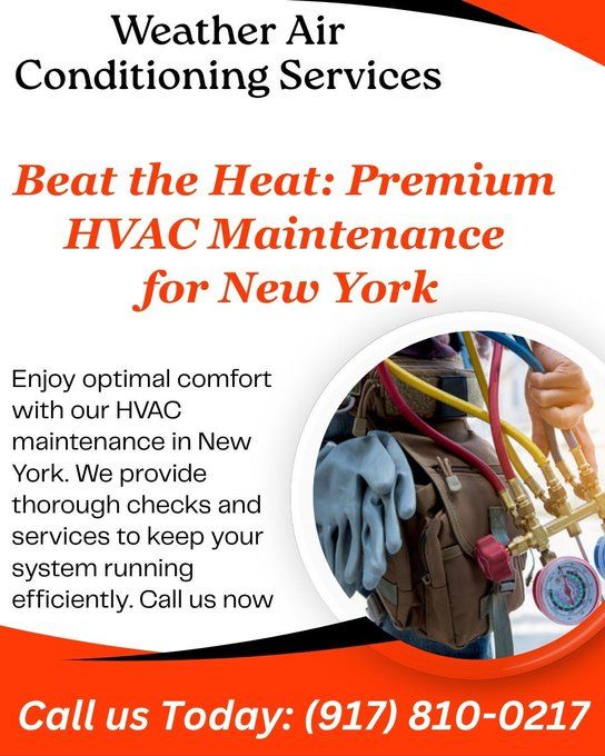 Weather Air Conditioning Services is the premier HVAC company in NYC, providing a comprehensive range of HVAC services. Our team of experts specializes in installations, maintenance, and repairs, ensuring that your HVAC system operates at its best. With our top-notch services, you can trust us to keep your home or business comfortable all year round. Whether you need a new HVAC system installed or require regular maintenance, we have the expertise and experience to meet all your HVAC needs.https://www.weatherairconditioning.com/ (917) 810-0217 #hvac #plumbing #airconditioning #cooling #hvaclife #plumber #heatingandcooling #hvacservice #furnace #ac #hvactechnician #boiler #hvactech #plumbinglife #heatingengineer #airconditioner #construction #maintenance #plumbers #hvacinstall #hvacrepair #home #service #boilers #refrigeration #heatingsystem #hvacr #gas #contractor #newyork ![]() | |
