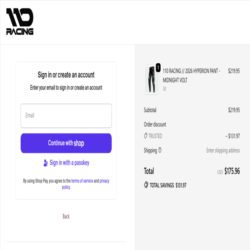 Use the coupon code: TRUSTED to get 60% off all products you need from 110Racing. ![]() | |
