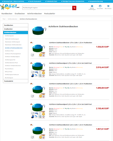 Achtform Stahlwandbecken online kaufen. Achtformbecken in verschiedenen Größen und Tiefen. Germany-Pools Schwimmbecken. Jetzt günstig bestellen. ![]() | |
